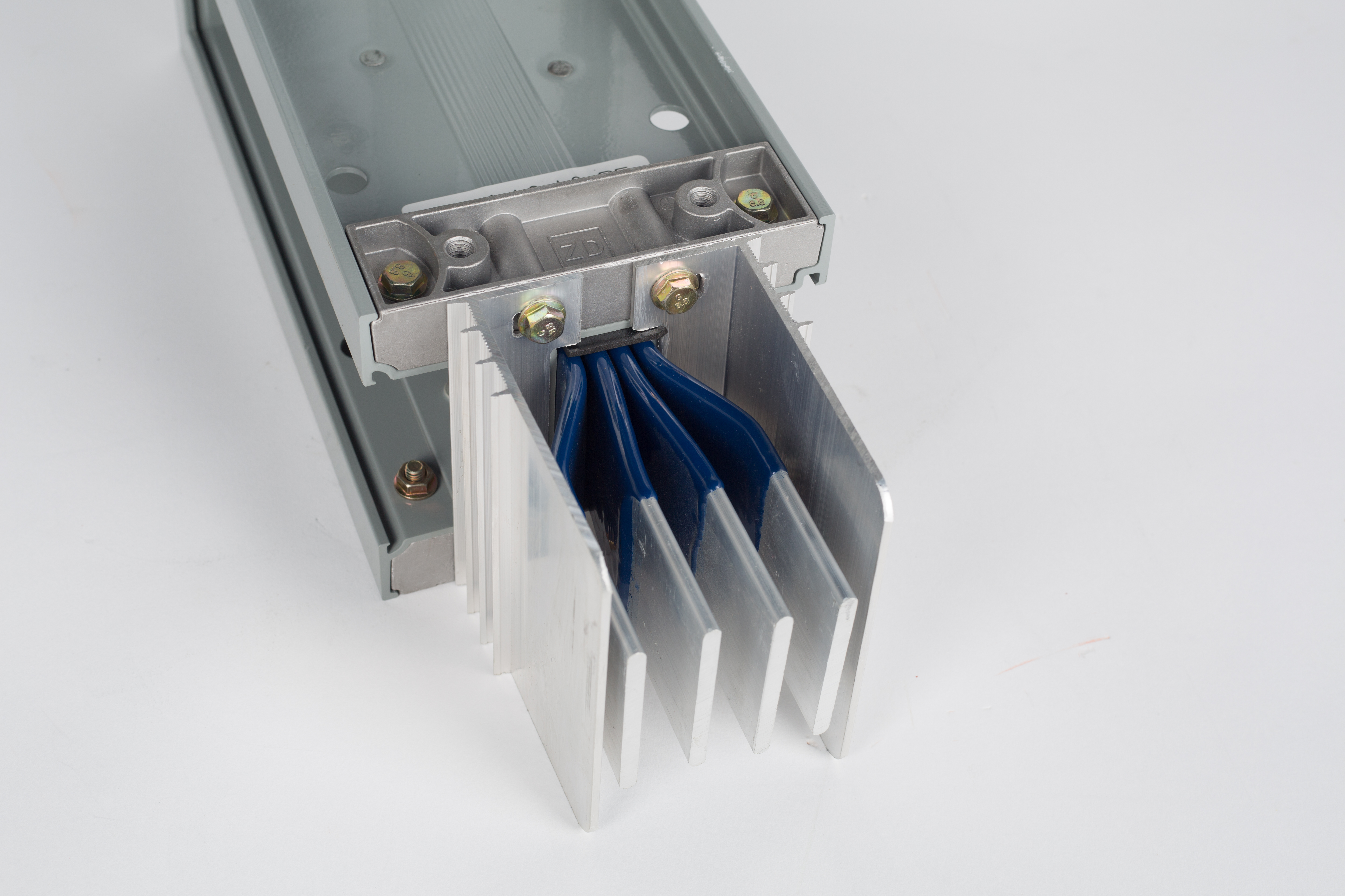 此型號母線槽為高強鋼制結構,可采用螺栓或鉚接固定殼體。鋼制外殼采用彩涂板緊貼導體直接基板,彩涂板在兩側板上設置了U型管狀的散熱片結構,使散熱片的散熱面積增加了5倍以上,更大限度地利用了側板的有*空間,增大散熱面積,能夠快速傳導導體熱量,加速散熱的功能。此母線為市場經濟型*優母線。